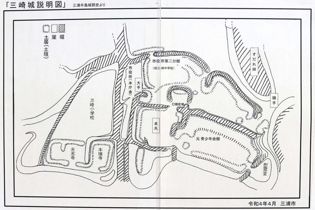 三浦市役所の東側に三崎城の本丸などの主要部があります。