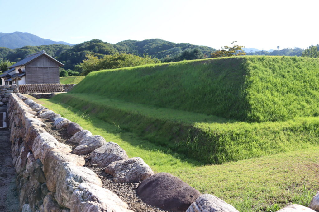 拾九間長屋の横には空堀と土塁が復元されています。