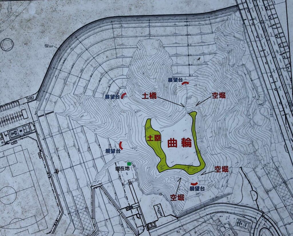 現在は木津城址公園として整備され、主郭跡や土塁、空堀が残され見どころとなっています。