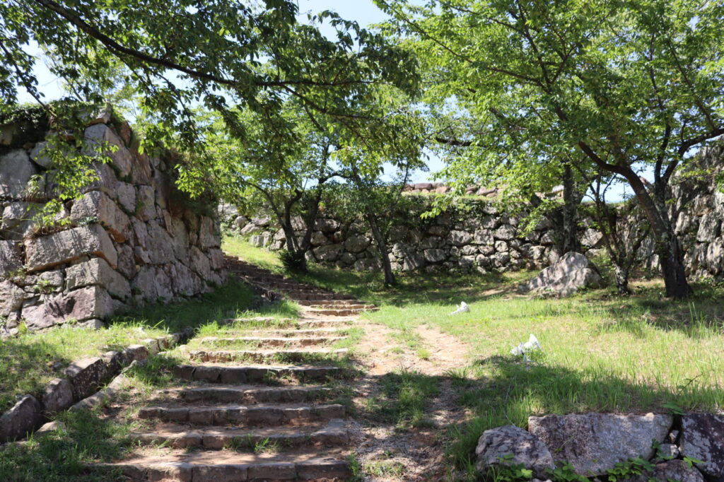 内膳丸と本丸の間には登り石垣が残されています。