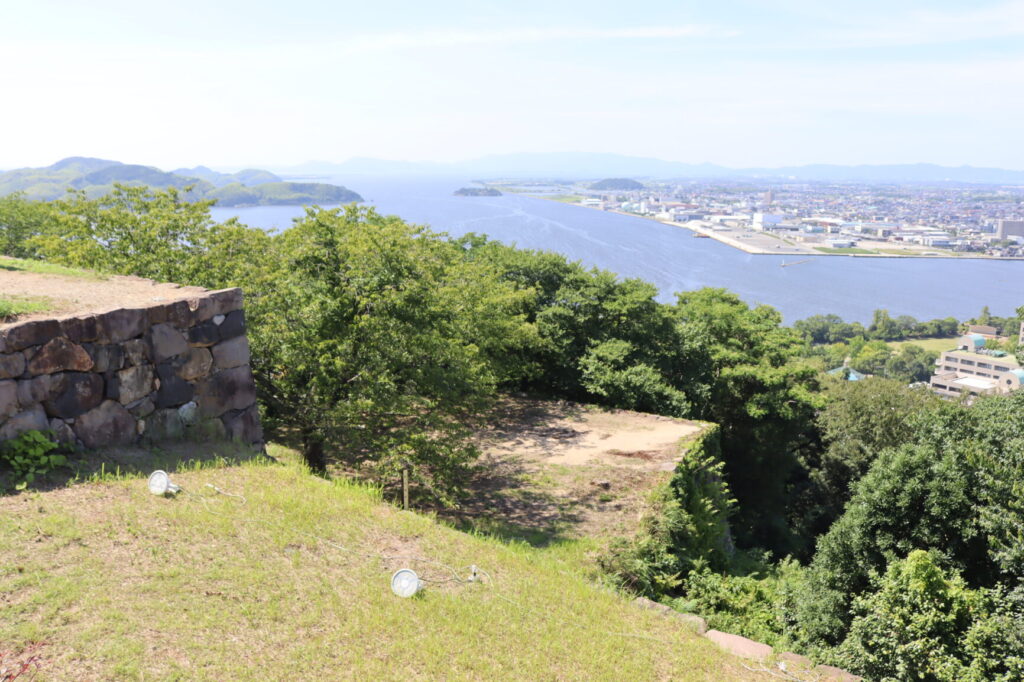 北西側は日本海や中海、東側は米子の町並みを一望する事が出来て、米子城の見どころの一つとなっています。