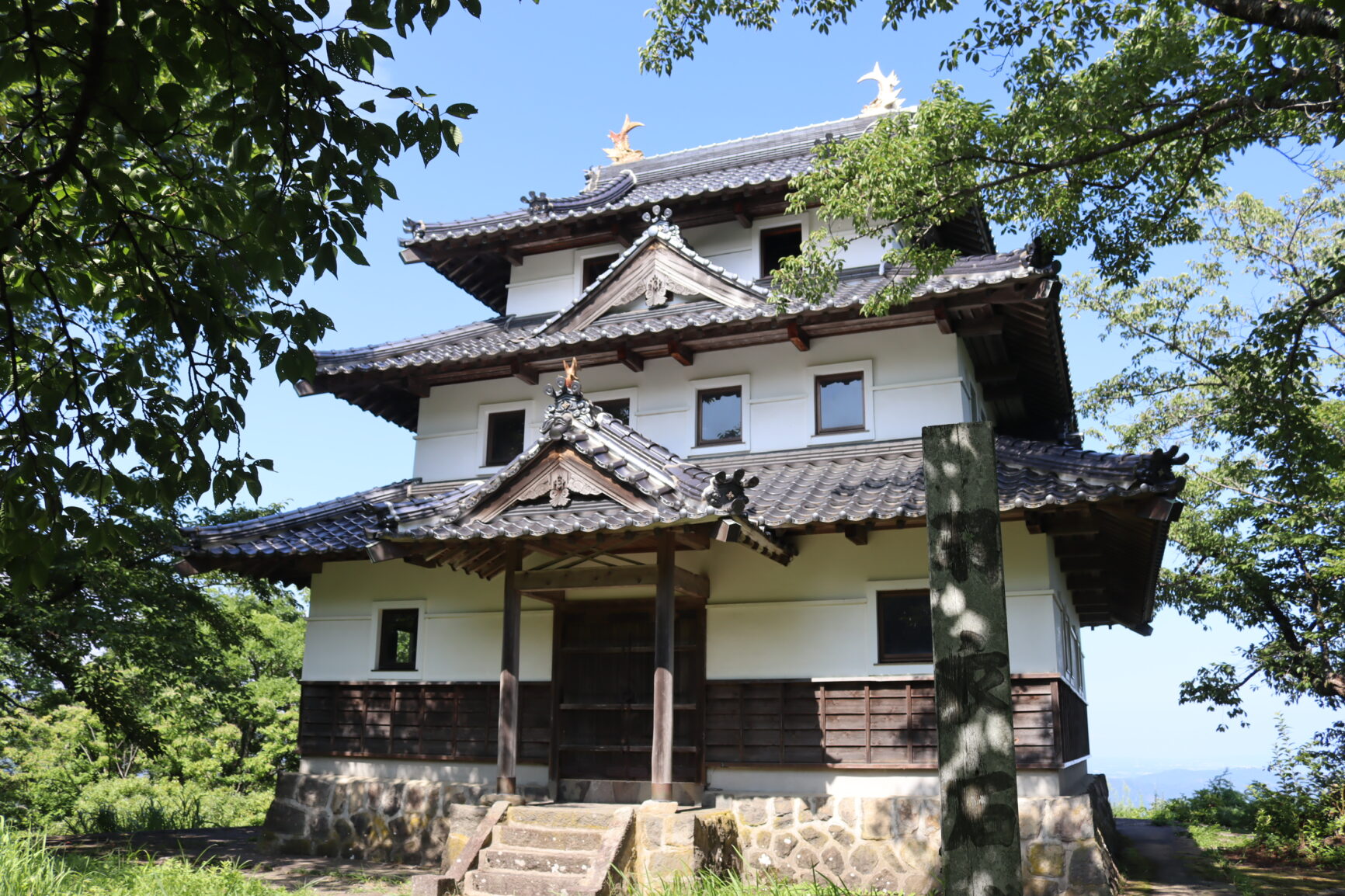 主郭に建てられ羽衣石城のシンボルとなっている三重三階の模擬天守閣