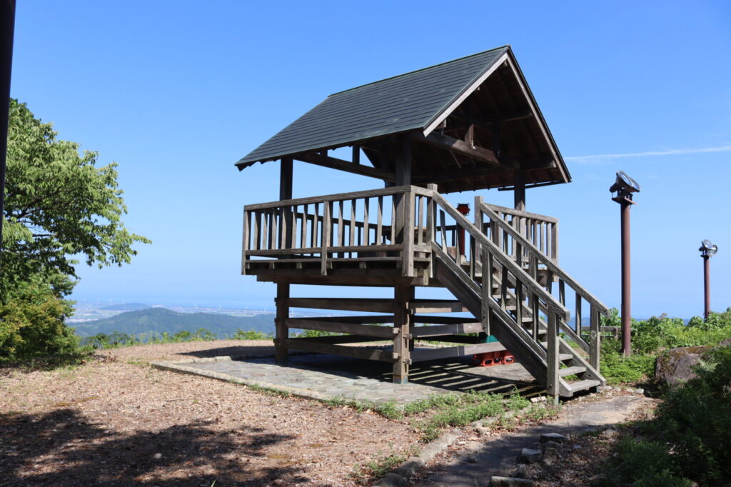 帯郭の西側(登山道①側)には展望台が設置されていて、羽衣石城の絶景を楽しむ事が出来ます。