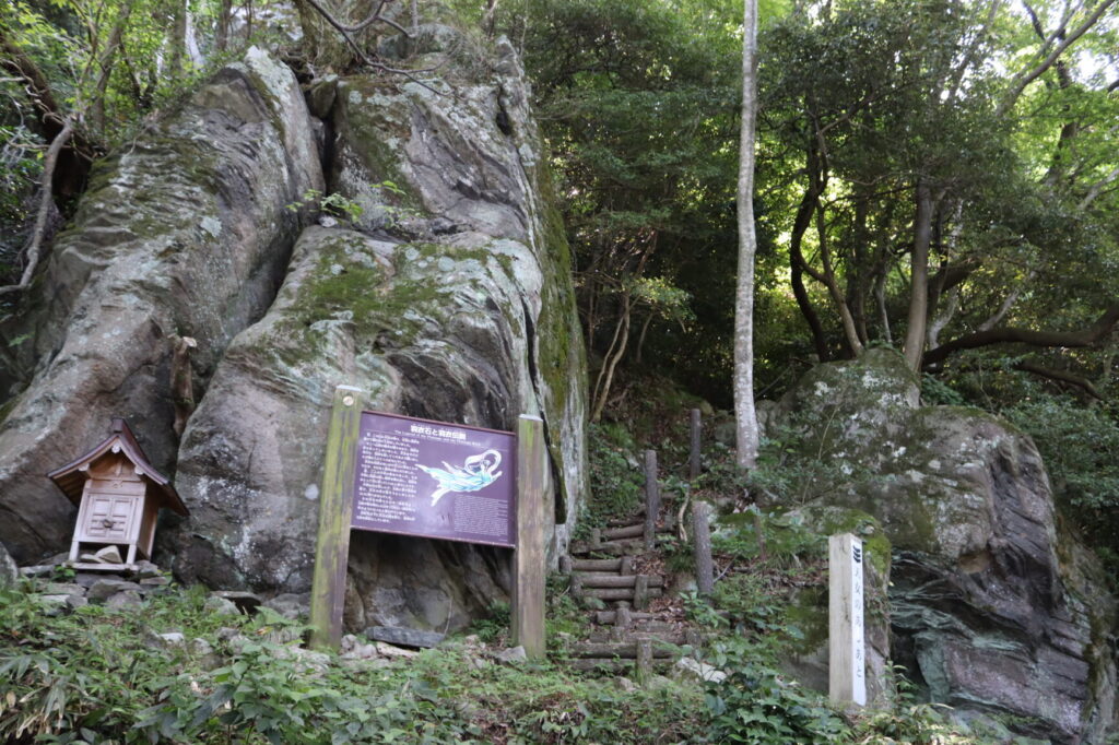 登山道を進むと羽衣石が見えて来ます。