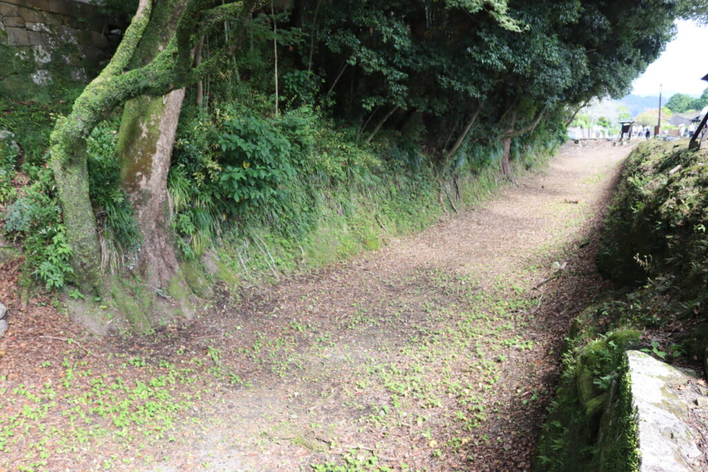 空堀は飫肥城の主要部と武家屋敷、城下町の間に築かれていて、折れを伴いながら東西に延びています。