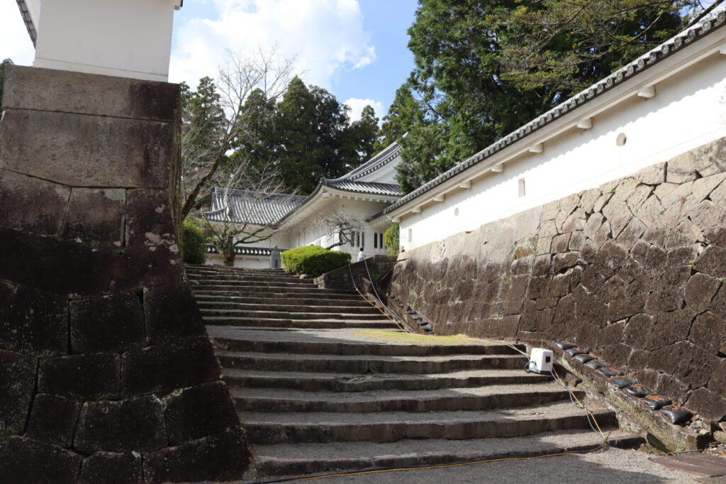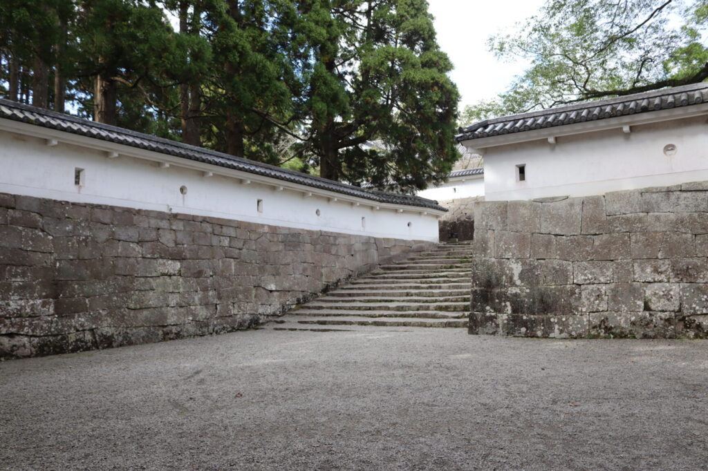石段と石垣により何度も折り曲げられた旧本丸の虎口は、堅牢さが体感出来て見どころです。