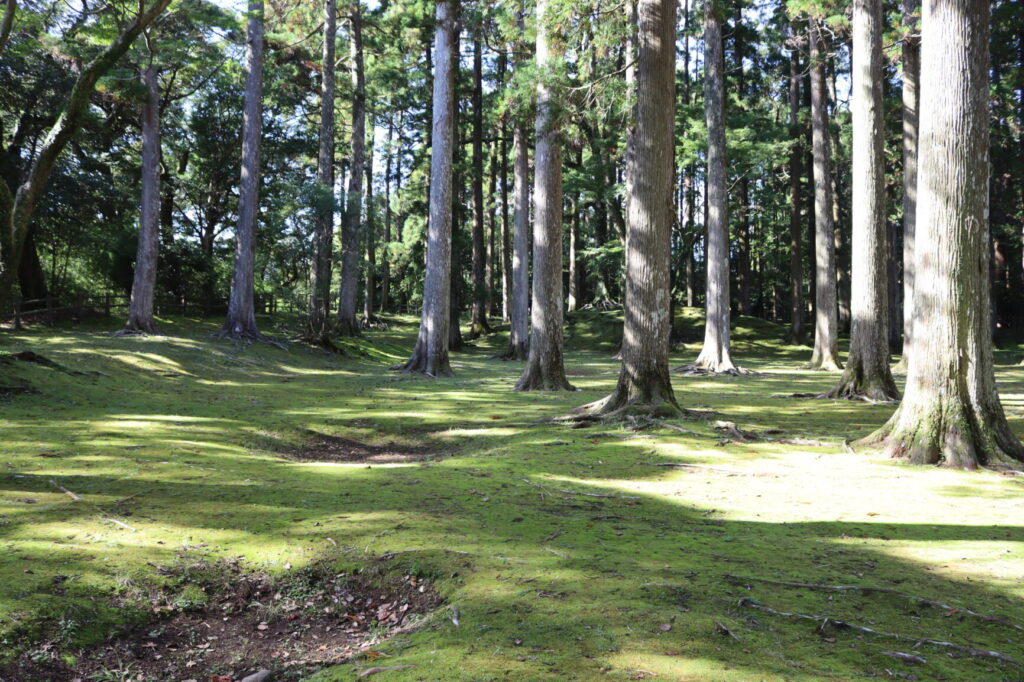 現在の旧本丸は地面が苔生していて、真っすぐ延びた飫肥杉が独特な景観を形成しています。