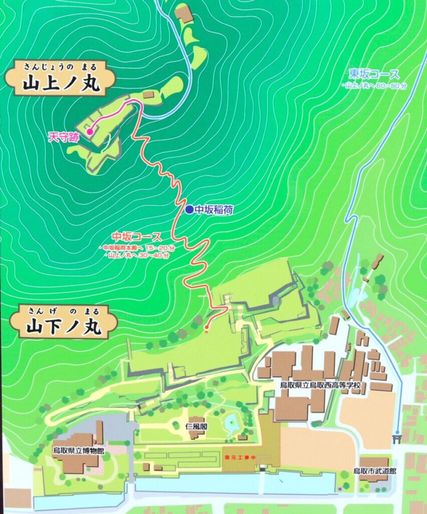 山麓部に山下の丸と云われる城域があり、近世城郭で鳥取藩の政務を司る機能があります。