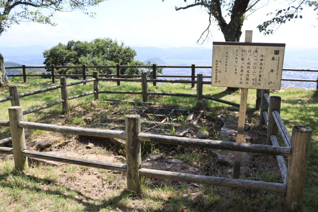 車井戸は1602年に池田長吉が3年の歳月を掛けて築いたと伝わり、山上の丸の貴重な水源であったと思われます。