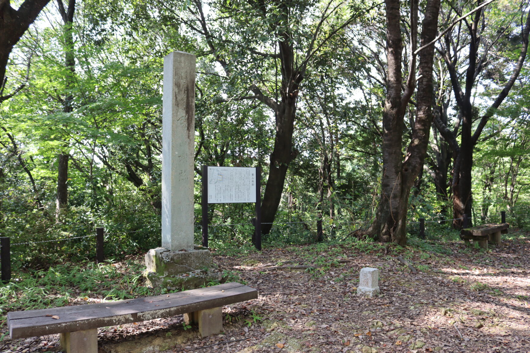鷺山の山頂部には鷺山城の石碑と説明板が設置されています。